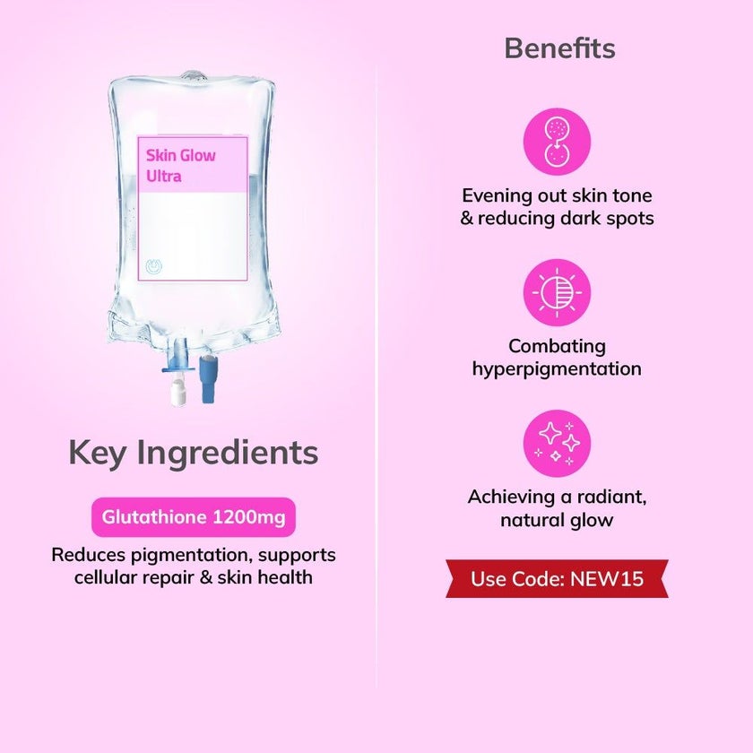 Achieve deeper skin clarity and enhanced detox with the Skin Glow Max – Glutathione drip, formulated to help reduce pigmentation, refresh your overall look, and support a radiant glow from within.