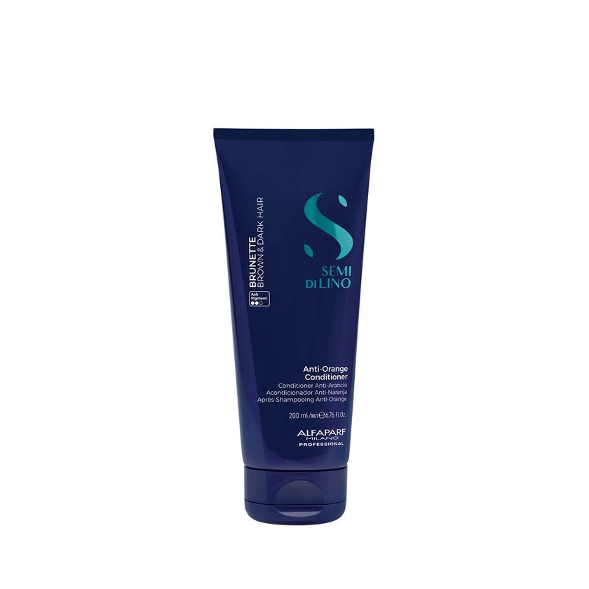 Alfaparf Semi Di Lino Brunette Anti-Orange Conditioner is a professional tinting conditioner created for women with colored or dyed brown hair. As part of the Semi Di Lino Brunette sub-collection, it is designed to address the common challenge of unwanted orange undertones that often appear in brown shades after coloring. This conditioner is enriched with blue pigments that work to neutralize warm tones, restoring the purity of brunette shades while maintaining vibrancy. In addition to its corrective function, it also delivers conditioning care that hydrates, nourishes, and leaves hair feeling soft and smooth. It's fine, creamy texture allows for even application, while leaving the hair refreshed and lightly scented. The formula combines several active ingredients to deliver complete care: vitamin E helps protect against free radicals, while omega-3 and omega-6 fatty acids provide hydration and support the hair's strength. Together, these components ensure that colored hair not only looks balanced in tone but also remains healthy and manageable. With regular use, the Brunette Anti-Orange Conditioner maintains a pure, glossy brunette finish while extending the life of the color. Suitable for everyday use, it offers a simple yet effective solution for women seeking to keep their brown hair fresh, vibrant, and free from unwanted orange tones.