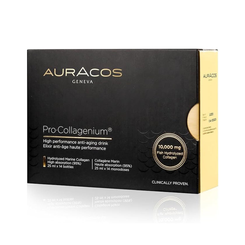 Auracos Geneva Pro Collagenium 25 mL Oral Anti-Aging Solution contains Pro.Collagenium which is a new super-concentrated (10,000 mg) collagen-based anti-aging liquid food supplement which contributes to perfect your skin's appearance from within. When taken on daily basis, Pro.Collagenium is clinically proven to slow the skin aging process in the deeper layers of the skin with significant improvement in skin texture after just 3 months.