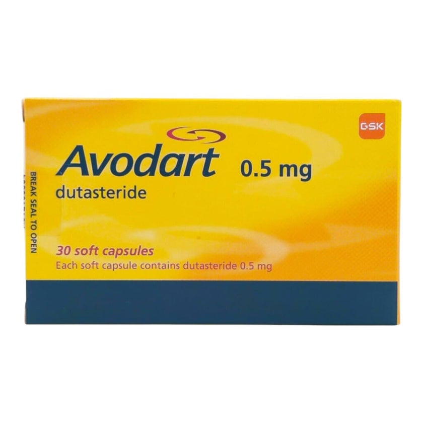 Avodart 0.5 mg Soft Capsules are a prescription urology medication containing dutasteride 0.5 mg, a potent 5-alpha-reductase inhibitor used for the management of benign prostatic hyperplasia (BPH) in men with an enlarged prostate. By reducing DHT levels, Avodart helps shrink the enlarged prostate gland over time and alleviate symptoms associated with BPH. Men with BPH commonly experience difficulties such as weak urinary stream, frequent urination (especially at night), urgency, incomplete bladder emptying and hesitancy. Regular use of Avodart 0.5 mg as prescribed can lead to improved urinary flow and reduced BPH symptoms, helping men maintain a better quality of life. Dutasteride therapy also reduces the overall risk of acute urinary retention and the long-term need for surgical intervention related to prostate enlargement. It is important to follow your healthcare provider's instructions regarding dosing and follow-up, as dutasteride affects hormone levels and prostate size gradually. This medicine is intended for use in adult men diagnosed with BPH and should not be used by women or children.