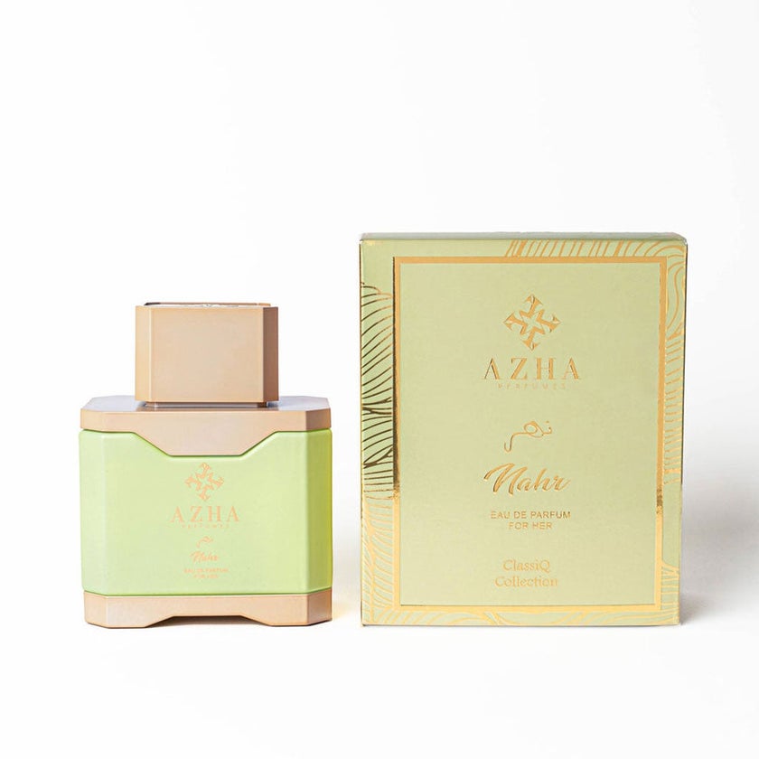 Azha Perfumes Nahr Eau De Parfum is a captivating floral oriental fragrance designed for the woman who leaves a lasting impression delicate yet daring, graceful yet unforgettable. This exquisite scent opens with a juicy and vibrant burst of litchi, bergamot, pear, and peony, creating a fresh and uplifting introduction that immediately draws attention. The fruity notes are bright and inviting, evoking a sense of elegance and playfulness that sets the tone for the fragrance's unfolding story. As Nahr develops, its heart reveals a sophisticated blend of rose, incense, leather, and everlasting flower. The rose brings classic floral romance, while incense adds a smoky, mystical edge. The leather note introduces a daring and sensual character, making the heart of this fragrance both complex and intriguing. The everlasting flower softens the composition with a gentle, lingering floral touch, striking a perfect balance between strength and femininity. The base of Nahr is warm and comforting, with rich layers of vanilla, amber, woody accords, and musk. These notes provide depth and longevity, enveloping the wearer in a cozy, sensual embrace. Vanilla adds a creamy sweetness, amber lends warmth and radiance, while the woody accords and musk create a smooth, grounding foundation that enhances the fragrance's overall allure. Nahr is ideal for women who want a scent that embodies both softness and power perfect for making a bold statement during the day or exuding elegant mystery at night. Whether worn at special events or for everyday sophistication, this fragrance captures the essence of modern femininity with its seamless blend of fresh, floral, and oriental elements. Presented in an elegant bottle that reflects its rich and layered nature, Azha Perfumes Nahr EDP For Women is more than just a fragrance- it's an expression of timeless beauty and captivating presence.