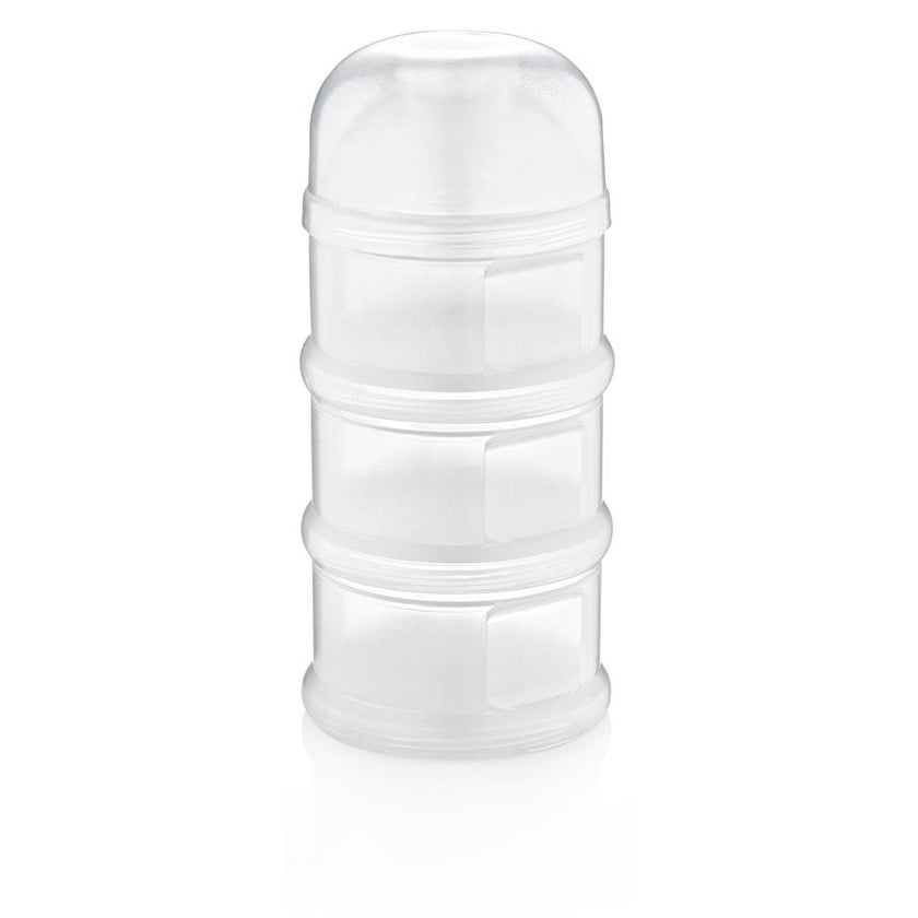 The Babyjem Milk Powder Dispenser Stackable Container is a practical and travel-friendly feeding accessory that simplifies bottle prep for parents and caregivers. Designed with busy routines in mind, this dispenser features three separate compartments to store pre-measured portions of milk powder or formula. Whether you are at home, out for a walk, or traveling, this container allows you to prepare bottles quickly, hygienically, and without mess. Crafted from BPA-free, PVC-free, and phthalate-free materials, the Babyjem Milk Powder Dispenser Stackable Container - White ensures your baby's safety at every stage of feeding. The container is sturdy and compact, built to withstand repeated use without warping or leaking. The smooth interior finish prevents powder residue from sticking, while the wide compartments make it easy to load and clean. One of the key features of this product is the "moveable lid", which rotates to align with any of the three compartments. This clever design allows you to pour the powdered milk directly into the bottle through a designated spout, without opening the entire lid or contaminating unused portions. The result is a faster, cleaner, and more controlled milk prep process, especially useful during night feedings or while traveling. The Babyjem Milk Powder Dispenser Stackable Container - White is also compatible with sterilization equipment, dishwasher cleaning, and microwave-safe containers, making it easy to maintain hygiene without extra hassle. The material composition is designed for repeated use, while the compact size ensures it fits easily into a diaper bag or bottle kit. Perfect for parents who value organization and ease, this milk powder dispenser supports a smooth feeding experience wherever you go. It has simple design, safe materials, and thoughtful compartmentalization make it an essential part of any baby feeding routine.