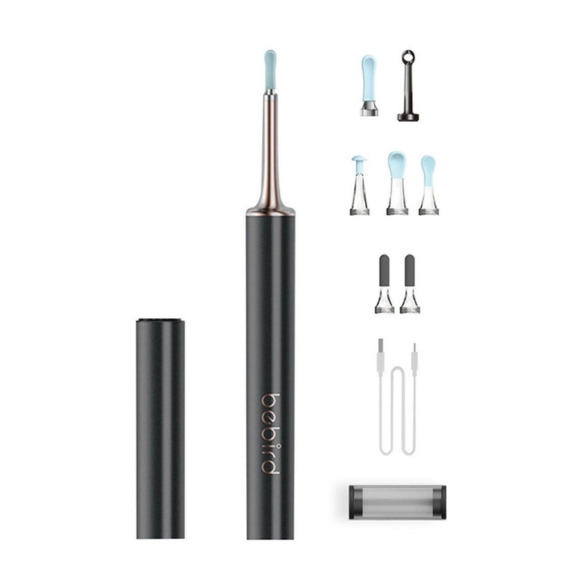 Bebird T15 Smart Visual Ear Stick Earwax Cleaner Kit is a next-generation ear hygiene device featuring a built-in 5MP Full HD camera and advanced 1080P CMOS sensor. Designed to promote safer and more effective earwax removal, the Bebird T15 offers a detailed live view of the ear canal through its smart app, compatible with both iOS and Android. The camera transmits a 30fps image via a 2.4 GHz Wi-Fi connection, ensuring smooth, real-time visuals without lag. Equipped with a 6-axis gyroscope and six LED lights, the T15 provides image stability and clear illumination of the inner ear, reducing the risk of injury during cleaning. The waterproof camera lens is fog- and dust-resistant, and the included app allows users to capture and store images or videos of the ear canal for monitoring or consultations. The T15 also includes seven soft, silicone attachments suited for different hygiene tasks. These tips screw on securely to prevent slipping and are suitable for ear, nose, and oral care. A stainless steel eyelet attachment enables blackhead and comedones removal, making it a versatile grooming tool. Its 300 mAh rechargeable battery provides up to 85 minutes of use on a full charge. The device activates automatically when the protective magnetic cap is removed, thanks to its built-in HALL sensor. With an ergonomic build and elegant pearlescent finish, the Bebird T15 is portable, hygienic, and ideal for both home and travel use.