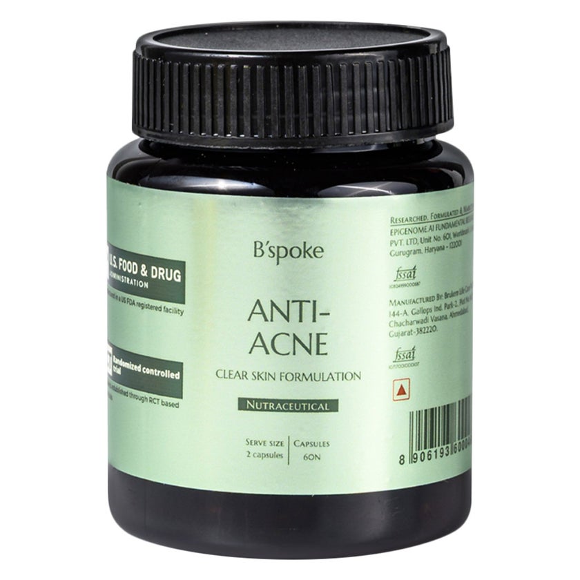 B'spoke Anti Acne Capsules For Clear Skin is a targeted skincare supplement designed to support clearer healthier skin by addressing acne from within. This advanced formula combines scientifically backed ingredients such as neem extract vitamin A vitamin C vitamin B5 and evening primrose oil which work together to help reduce breakouts control excess oil and improve overall skin condition. It helps combat acne causing bacteria while reducing inflammation and redness promoting a calmer and more balanced complexion. The blend also supports skin hydration and sebum regulation helping to prevent clogged pores and excess shine without drying the skin. Rich in antioxidants the formula helps protect the skin from oxidative stress while supporting collagen production and improving the appearance of acne marks and uneven texture. With consistent use it helps refine pores enhance skin clarity and promote a smoother more even toned look. Suitable for both men and women this supplement provides daily internal support for healthier clearer and more radiant skin.