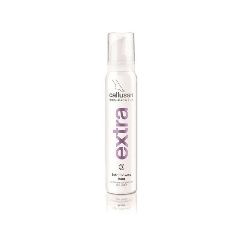 Callusan Extra is a non-comedogenic foot cream mousse particularly recommended for dry feet and diabetic foot care. It contains 10% urea and ensures plenty of moisture is being supplied to the skin. It also contains stearic acid which gives extra protection to the skin, and, glycerine and squalane which leaves the skin soft and supple. There is a Callusan cream mousse for your individual care needs. Callusan cream mousses are cosmetic products in accordance with the EU Cosmetics Directive. The texture of the mousse is light, thin and airy. It is absorbed as soon as it is applied to the skin, has a natural, pleasant scent, does not clog pores and does not make greasy.