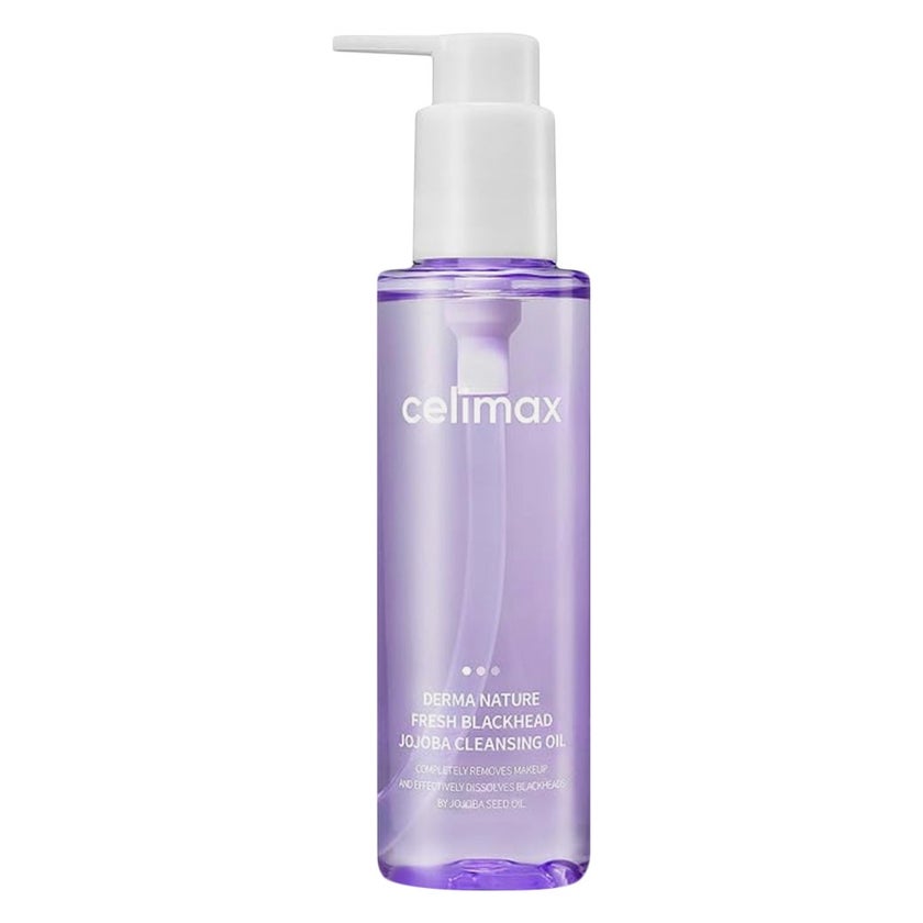 Celimax Derma Nature Fresh Blackhead Jojoba Cleansing Oil is a light, hydrophilic cleansing oil specially formulated to dissolve makeup, sebum, and stubborn blackheads without leaving a greasy residue. Infused with six nourishing plant oils including jojoba, meadowfoam, sweet almond, sunflower, olive, and bergamot it effectively cleanses while delivering hydration. Jojoba oil, at 1500 ppm, mimics the skin's natural sebum to penetrate deep into pores and dissolve comedones gently and effectively. The lightweight hydrophilic formula transforms into a milky emulsion upon contact with water, ensuring strong emulsification without causing irritation or tightness . For a gentle but effective deep clean, use daily or as needed. This cleansing oil brings together natural ingredients and skin-friendly formulation to deliver a thorough yet calming cleansing experience, making it ideal for those dealing with blackheads, excess oil, or dryness without irritation.