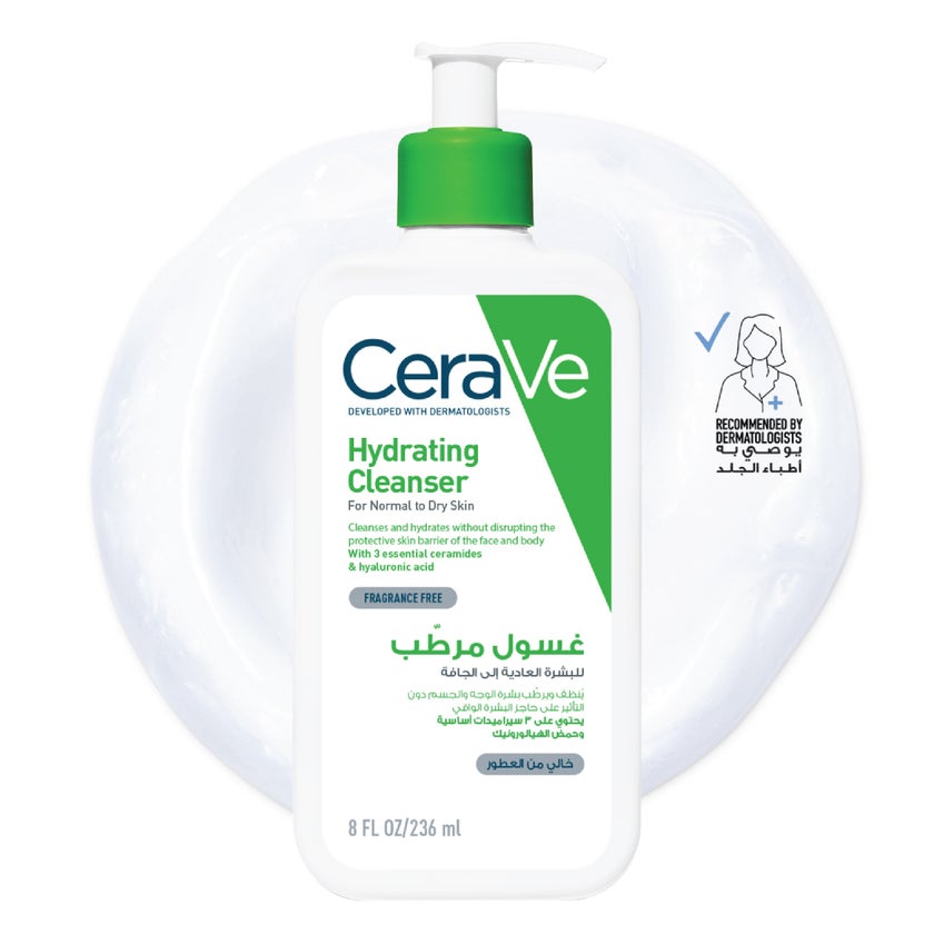 CeraVe Hydrating Cleanser For Normal To Dry Skin is a fragrance-free cleanser that removes dirt, makeup, and debris without disrupting the skin barrier or stripping moisture. Developed with dermatologists and formulated with ceramides and hyaluronic acid to help restore the barrier and retain hydration. Features MVE delivery technology for sustained release.