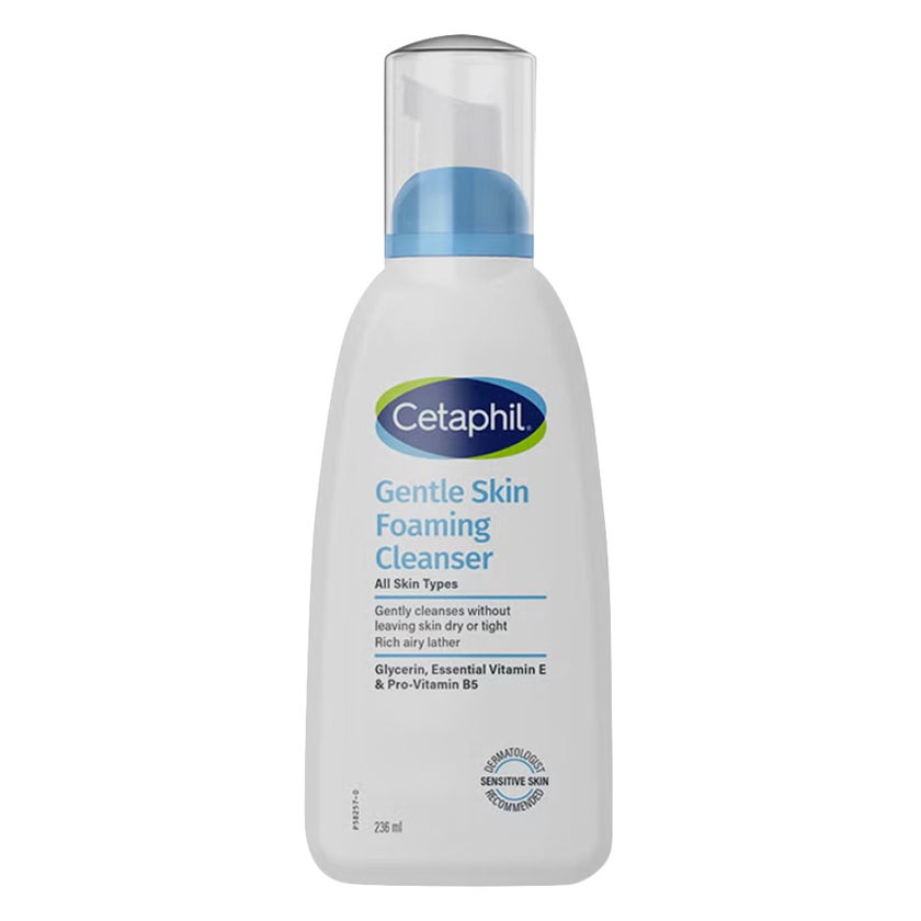 Cetaphil Gentle Skin Foaming Cleanser is a mild yet effective daily face wash formulated especially for dry to normal and sensitive skin types. Its instantly foaming texture transforms into a rich, airy lather that gently lifts away dirt, excess oil, and makeup without stripping the skin of its natural moisture balance. Enriched with hydrating Glycerin, Pro-Vitamin B5 (Panthenol), and essential Vitamin E, the formula not only cleanses but also conditions and softens the skin, helping to maintain comfort and suppleness throughout the day. Designed to defend against the five signs of skin sensitivity dryness, irritation, roughness, tightness, and a weakened skin barrier, this cleanser is dermatologist tested, fragrance-free, paraben-free, soap-free, and non-irritating. After cleansing, skin feels clean yet balanced, making it an ideal foundation for the rest of your skincare routine. For best results, use morning and night, followed by a suitable moisturizer to lock in hydration and support long-lasting skin comfort.