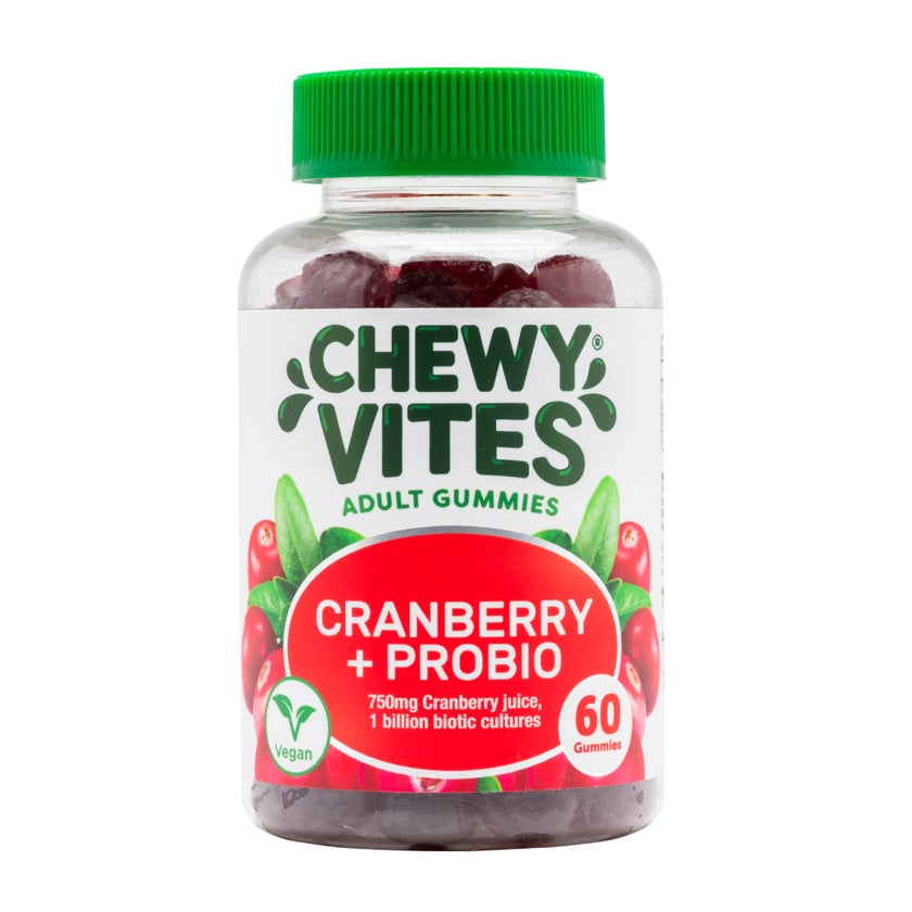 Chewy Vites CranBerry + Probiotic Adult Gummies are a delicious and convenient way to support daily wellbeing, digestive health, and urinary tract balance. Each serving delivers the natural goodness of 750mg cranberry juice concentrate (equivalent to 2500mg of cranberry fruit) combined with 1 billion live probiotic cultures, helping to maintain a healthy gut microbiome and urinary health. Enriched with Vitamin C, these gummies also contribute to immune support and antioxidant protection. With a pleasant cranberry flavor and easy-to-chew texture, they make wellness simple and enjoyable for adults seeking natural daily support.