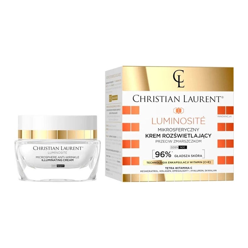 Christian Laurent Microsphere Anti-Wrinkle Illuminating Cream is a luxurious skincare solution that combines advanced anti-ageing performance with powerful brightening action. Specially developed to target multiple signs of ageing, this cream works to visibly reduce wrinkles, restore firmness, and even out the complexion for a radiant, youthful appearance. At the heart of the formula lies the innovative microsphere technology with encapsulated vitamins C and E. These active ingredients are gradually released to penetrate deep into the skin, ensuring long-lasting protection, hydration, and regeneration. Complementing this is the exclusive OmegaLight complex, which effectively lightens dark spots, balances uneven pigmentation, and delivers a brighter, more luminous complexion. The formula is enriched with a blend of highly effective actives that reinforce skin resilience and beauty. Collagen improves firmness, elasticity, and facial contours while hyaluronic acid boosts moisture levels and strengthens the hydrolipid barrier. Resveratrol provides antioxidant protection, combating free radicals to slow down premature ageing, while squalane nourishes, prevents moisture loss, and supports regeneration. Copper peptide stimulates collagen and elastin production for smoother, firmer skin, while arbutin further enhances brightness by reducing pigmentation spots and evening skin tone. The cream's velvety texture delivers instant comfort, leaving skin deeply hydrated, smooth, and supple throughout the day. Its subtle, elegant fragrance adds to the indulgent experience, transforming daily skincare into a ritual of beauty and self-care. With consistent use, Christian Laurent Luminosite Brightening Anti-Wrinkle Cream helps restore youthful vitality, radiant clarity, and a visibly rejuvenated complexion, making it an essential part of an effective anti-ageing routine.