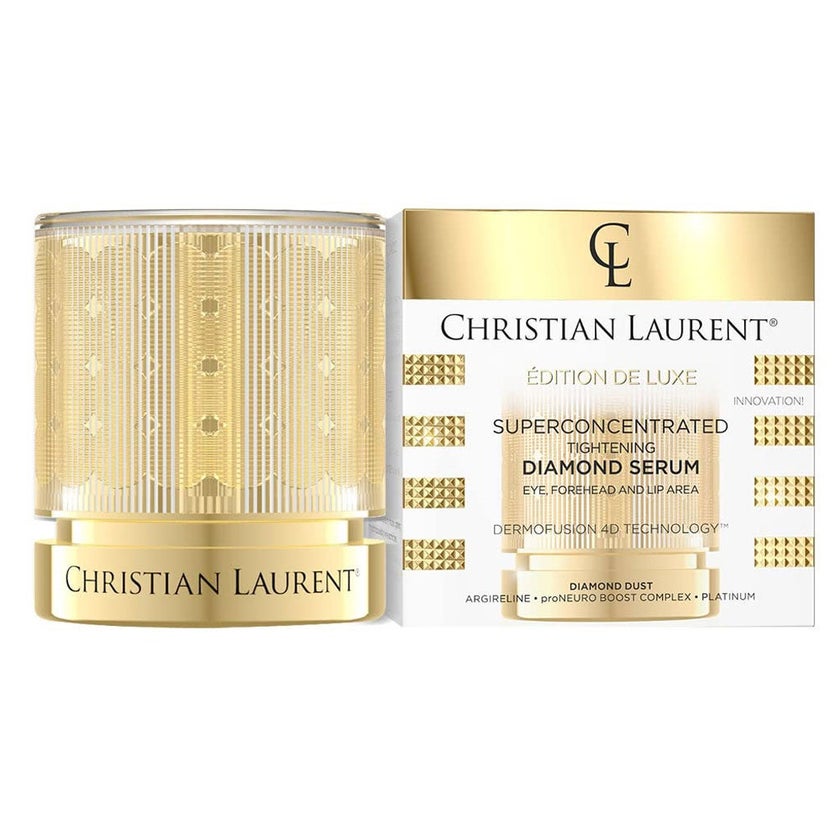 Christian Laurent Super Concentrated Tightening Diamond Serum is a luxurious anti-ageing serum designed to target the delicate areas around the eyes, lips, and forehead. Its innovative, triple-concentrated formula combines 24K gold, diamond dust, Argireline, and the proNEURO BOOST complex to visibly smooth fine lines and relax mimic muscles for an immediate lifting and firming effect. The diamond dust reflects light, reducing the appearance of under-eye circles and brightening the skin, while gold moisturizes and improves skin elasticity. Advanced 4D Dermofusion technology delivers active ingredients deep into the skin using micro-transmitters, ensuring precise, gradual release for sustained results. Platinum and Moringa oil support nourishment and hydration, helping the skin feel soft, smooth, and rejuvenated. The lightweight, aloe-scented serum absorbs quickly without leaving a greasy residue, making it suitable for all skin types and ages. Clinical use demonstrates improved firmness, visible reduction of wrinkles, and enhanced radiance with regular application. Ideal for both morning and evening skincare routines, this serum transforms your anti-ageing regimen into a professional-grade treatment at home. With consistent use, skin appears lifted, revitalized, and youthful, providing targeted care for the areas most prone to early ageing. Christian Laurent's Iconic Diamond Collection ensures precision, luxury, and innovation for demanding skincare routines, delivering maximum effectiveness and a radiant, smooth complexion over time.