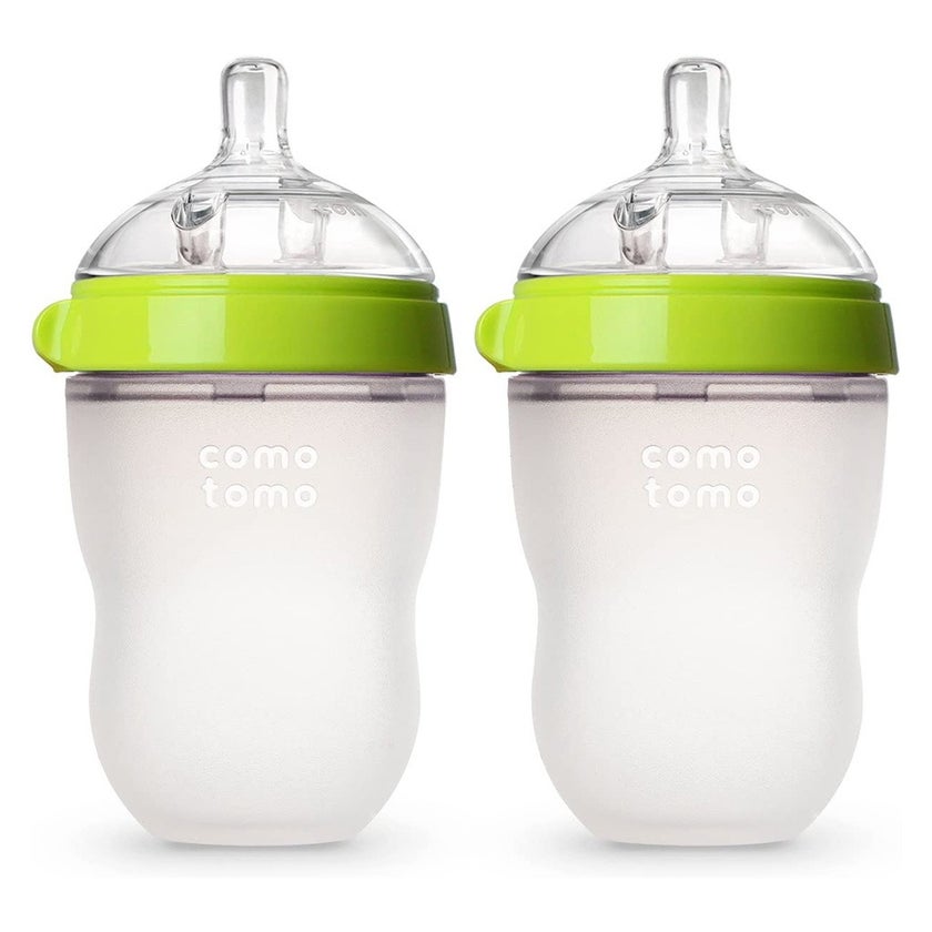 Comotomo Soft Hygienic Silicone Natural Feel Baby Feeding Bottle Green/White 250ml, Pack of 2's