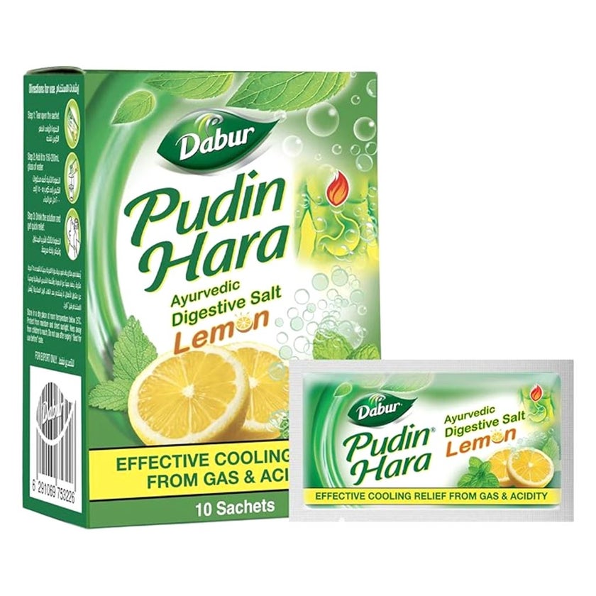 Dabur Pudin Hara Lemon Sachets is a trusted digestive remedy designed to deliver quick relief from acidity, gas, bloating, indigestion, and nausea. Made with the goodness of pudina (mint) and enhanced with a refreshing lemon taste, this liquid digestive works fast to calm your stomach and restore digestive comfort. Each easy-to-use sachet contains a carefully balanced formula that helps stimulate digestion, reduce gas formation, and ease abdominal discomfort after heavy or spicy meals. The compact sachet format makes it incredibly convenient to simply tear, consume, and feel relief within minutes, whether you’re at work, traveling, or dining out. Known for combining traditional digestive ingredients with modern convenience, Dabur Pudin Hara Lemon is suitable for adults and children (as directed) and fits seamlessly into busy lifestyles. If you’re looking for a portable digestive solution that’s effective, refreshing, and easy to use, this pack of 10 sachets is an ideal everyday companion for gut comfort.
