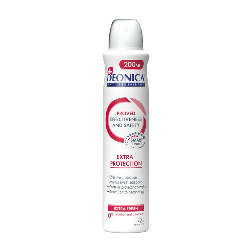 Deonica Extra-Protection Anti-Perspirant Men Spray is a high-performance antiperspirant designed for men who demand long-lasting freshness, comfort, and confidence throughout the day. Formulated with advanced Smart Control technology, this spray not only protects against sweat and odor but also adapts to your body's activity and temperature. The unique capsules within the formula release extra protection and enhance the deodorant's aroma when you move or when your body warms up, ensuring continuous freshness for up to 72 hours. The spray is enriched with a bisabolol-based caring complex, derived from chamomile, which gently soothes the skin and helps reduce irritation caused by shaving or friction. This ensures your underarms remain soft, comfortable, and irritation-free even during intense physical activity. Its light, clean scent combines refreshing floral and citrus notes with hints of green tea, creating an invigorating aroma that feels elegant, subtle, and motivating. Deonica Extra-Protection Anti-Perspirant is free from alcohol and parabens, making it suitable for daily use on all skin types, including sensitive skin. The quick-drying formula leaves no sticky residue or white marks on clothing, preventing the formation of yellow sweat stains while maintaining a clean and confident appearance. Clinically tested and dermatologist-approved, this antiperspirant effectively controls sweat and odor, making it an ideal choice for men with active lifestyles, whether at work, at the gym, or during outdoor activities. Its easy-to-use aerosol format allows for convenient application, ensuring even coverage and long-lasting protection.