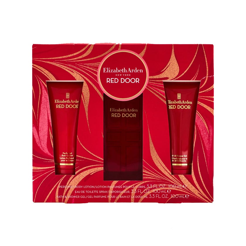 Elizabeth Arden Red Door Gift Set for Women is a timeless fragrance collection that embodies elegance, confidence, and sophistication. Inspired by the iconic red door of the Elizabeth Arden salon on Fifth Avenue, this luxurious gift set includes the signature Red Door Eau de Toilette (100ml), complemented by a matching perfumed body lotion and Red Door Bath & Shower Gel (100ml) for a complete fragrance layering experience. Red Door is a rich, classic floral fragrance that opens with vibrant fruity and floral notes, unfolding into a heart of opulent red roses, orchids, jasmine, and lily of the valley. The scent settles into a warm, sensual base of honey, sandalwood, and vetiver, leaving a lasting impression of refined femininity. The included bath & shower gel gently cleanses while subtly scenting the skin, and the perfumed body lotion helps hydrate and enhance the longevity of the fragrance. When layered together, these products create a deeper, longer-lasting scent experience. Elegantly packaged, this gift set makes an ideal present for birthdays, anniversaries, festive occasions, or as a luxurious treat for yourself.
