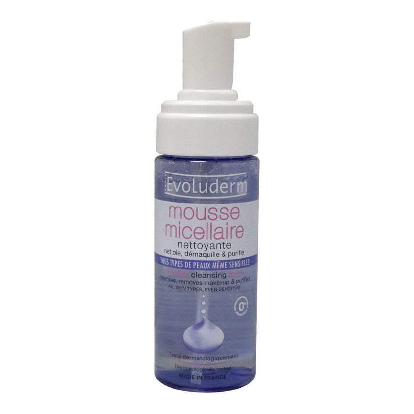 Evoluderm Micellar Cleansing Foam with Micellar technology an ultra-gentle cleansing active ingredient that work like magnets to capture impurities and make-up, combined with soothing and healing Aloe Vera extract.