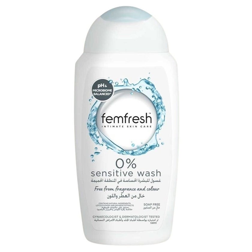 Femfresh 0% Sensitive Intimate Wash provides exceptionally gentle daily cleansing for delicate intimate skin. This fragrance‑free, colour‑free and soap‑free formula is designed specifically for sensitive skin. It features pH‑balanced and microbiome‑friendly cleansing, enriched with Lotus Flower extract, aloe vera and lactic acid to soothe, hydrate and protect. The mild formula is hypoallergenic and has been dermatologically and Gynaecologically tested for safety on intimate areas. With 94% ingredients of natural origin and free from harsh additives, this wash cleanses effectively without irritation or dryness. Suitable for everyday use, Femfresh supports comfort and confidence in your most sensitive areas.