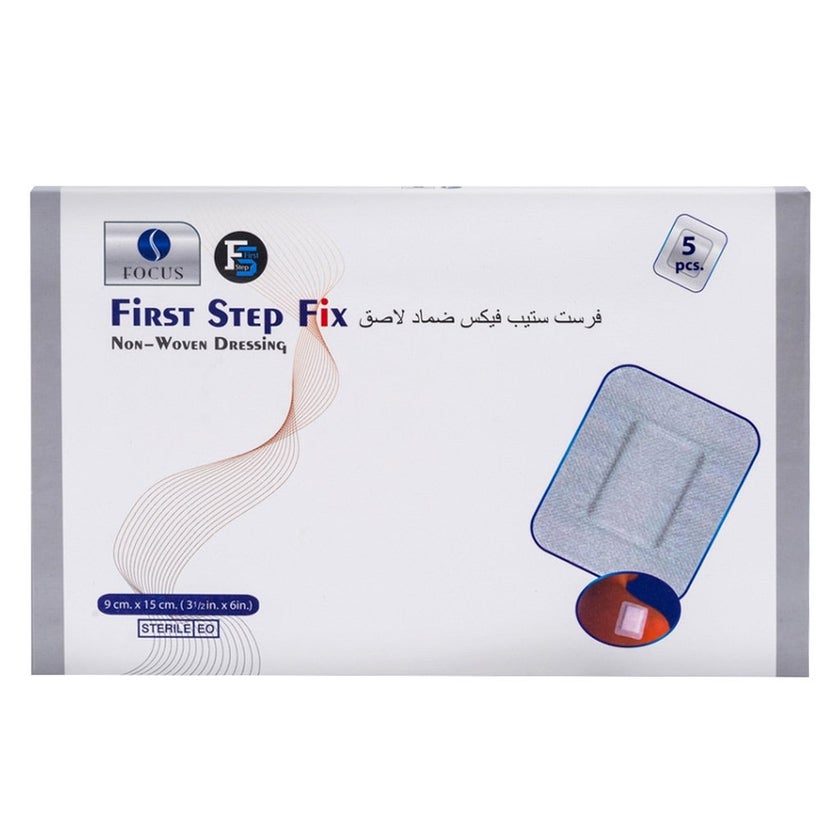 First Step fix non-woven adhesive wound dressing is made from fibres that are pressed together to resemble a weave. This dressing is supremely convenient to apply to wounds. It is extremely effective for applications such as post-operative wounds, bedsores, cysts, pressure ulcers, burns and other minor traumas. It is low-adherent and allows the wound to drain freely into an absorbent secondary dressing. It can create an occlusive environment for the wound and it is absorbing and permeable. Measures 15 cm length by 9 cm width.