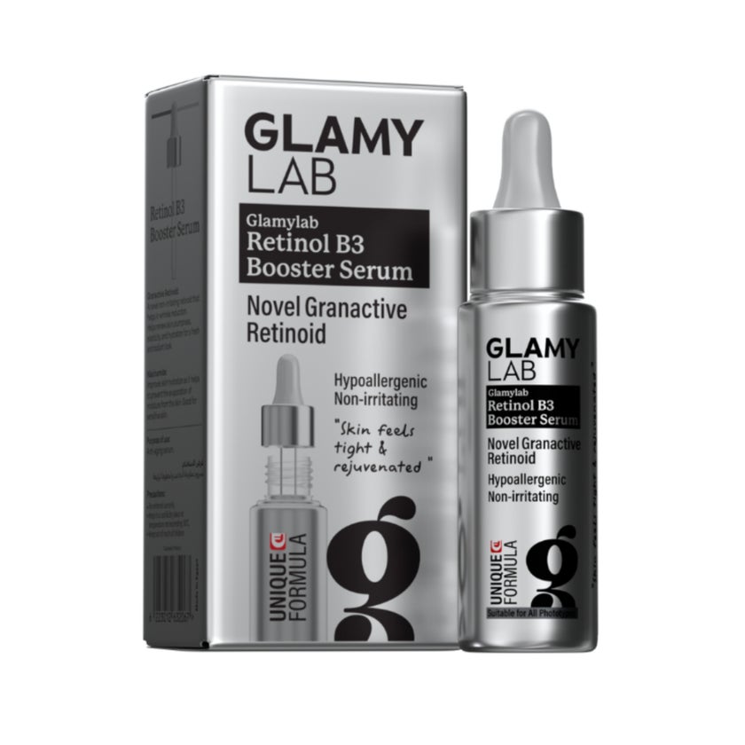 Glam Lab Retinol B3 Booster Serum is an advanced skin renewing treatment designed to improve texture reduce fine lines and promote a clearer more radiant complexion. This high performance formula features 1 percent granactive retinoid which helps accelerate skin renewal and refine the appearance of wrinkles while being gentle on the skin to minimize irritation. It works to smooth uneven texture and improve overall skin clarity making it ideal for those looking to target early signs of aging and dullness. Enriched with 3 percent niacinamide the formula helps strengthen the skin barrier enhance radiance and promote a more even skin tone. It supports hydration and balance while reducing the appearance of discoloration and improving skin resilience. The lightweight serum absorbs quickly into the skin allowing active ingredients to work effectively without leaving residue. With consistent use it helps refine pores smooth the skin surface and deliver a healthier more revitalised look making it suitable for regular nighttime