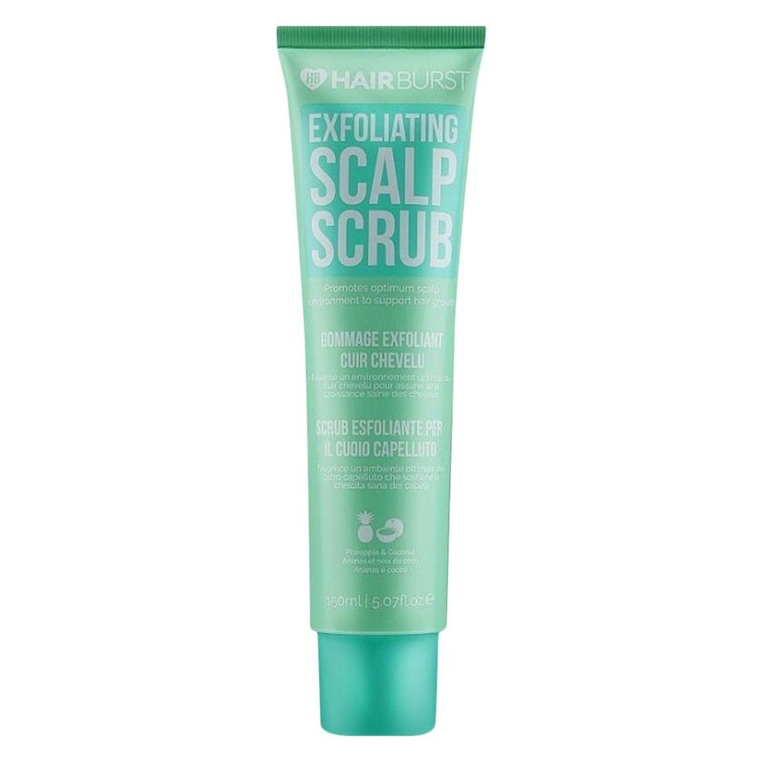 Hairburst Exfoliating Scalp Scrub is a pre shampoo treatment crafted to elevate your scalp care routine and lay the foundation for healthier hair. Blending both manual and chemical exfoliants, this scrub gently yet effectively removes dead skin cells, product residue, excess oil, and buildup that can clog hair follicles and weigh hair down. Its dual action comes from ingredients like glycolic acid - a mild alpha hydroxy acid (AHA) that works to chemically loosen dull, dead skin and small, natural particles such as bamboo stem powder and peach seed, which manually polish away surface debris. Designed for all hair types, the formula also soothes and refreshes the scalp. Enriched with Bamboo Stem & Peach Seed Powder, Bilberry Fruit Extract, Piroctone Olamine and probiotics. Piroctone Olamine and salicylic acid work to manage flakiness and help prevent dandruff, contributing to a balanced, healthier scalp environment. Regular use helps reduce visible scaling, soothe irritation, and minimize itchiness, transforming the scalp into a cleaner, more comfortable foundation for hair growth. The texture is crafted for ease of use: thick enough to hold on the scalp for a minute or two, yet easy to rinse out without leaving heavy residue. The scent is lightly botanical and fresh, making the treatment feel like a luxurious step in your haircare ritual.