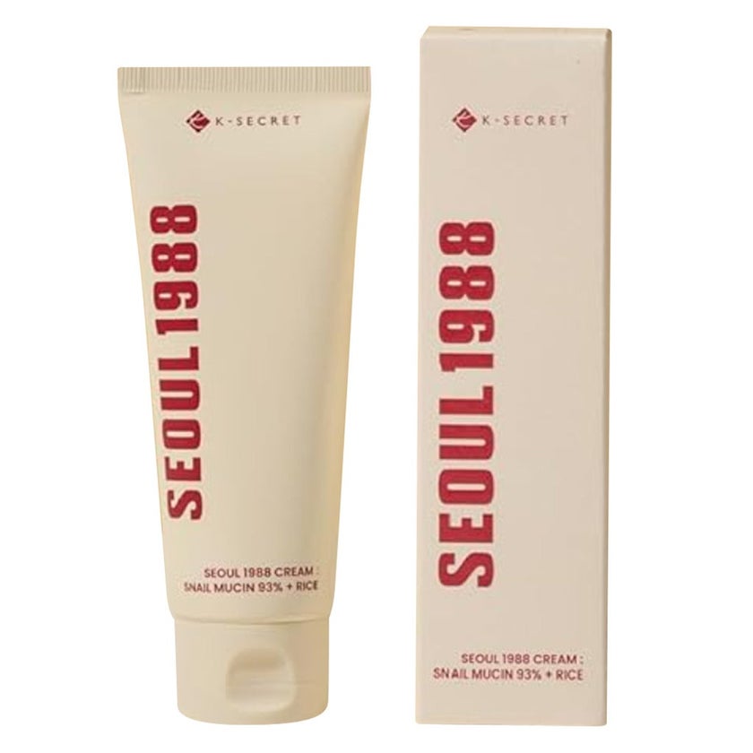 K-Secret Seoul 1988 Snail Mucin 93% + Rice Extract face cream meticulously curated face cream that targets dull skin, dryness, trouble skin and skin texture. This skin repairing & hydrating formula contains 93% of snail mucin secretion filtrate, rice extract, panthenol & ectoin. Snail Secretion filtrate delivers deep hydration and prevents dryness. Helps to calm irritated and sensitive skin as well as reduce redness. Panthenol stimulates collagen production and provides deep hydration for smooth and firm skin. K-Secret Seoul 1988 Snail Mucin 93% + Rice Extract face cream is carefully formulated, reef safe and free from common allergens, harsh alcohols, fragrances and parabens. Suitable for all skin types.