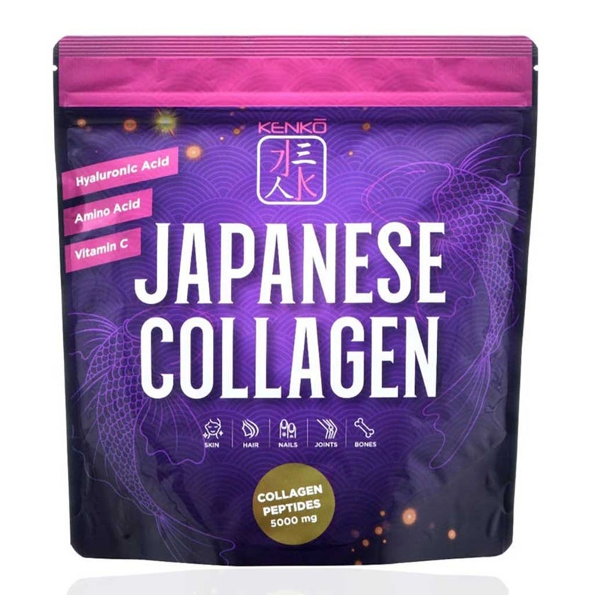 Kenko Japanese Fish Collagen With Hyaluronic Acid is a premium fish collagen powder meticulously crafted to support overall skin renewal, joint strength, and body vitality. This advanced formula combines high-quality Japanese marine collagen with a powerful blend of complementary ingredients designed to enhance your body’s natural repair and rejuvenation processes. known for its superior bioavailability and effectiveness in promoting skin elasticity, firmness, and youthful appearance. Collagen is a vital structural protein that diminishes with age, leading to signs of aging such as wrinkles, sagging skin, and weakened joints. It works to replenish these essential proteins, helping to maintain the natural structure of your skin, hair, nails, and connective tissues.