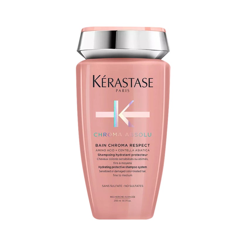 Kerastase Chroma Absolu Hydrating Protective Shampoo, a gentle yet effective formula designed specifically for color-treated and sensitized hair. This lightweight shampoo cleanses while preserving color vibrancy, helping to maintain shine and softness without stripping essential moisture. At the core of the formula is amino acid, a powerful building block of hair fiber that penetrates deep into the hair structure to strengthen and improve resilience from within. It is combined with Centella Asiatica, a regenerative botanical extract known for its soothing and repairing properties, helping to protect and restore weakened, color-treated strands. The formula also features a trio of caring acids (amino, lactic, and tartaric acids) that work across the hair fiber layers to reduce porosity, smooth the cuticle, and protect against environmental damage. This helps maintain color intensity while improving shine and reducing frizz. Clinically, the shampoo helps deliver up to 74% more shine and preserves up to 92% of color intensity after several weeks, while keeping hair hydrated and lightweight. Its pale rose gel texture creates a rich lather that gently cleanses while reinforcing the hair fiber, leaving hair soft, smooth, and visibly radiant after every wash.