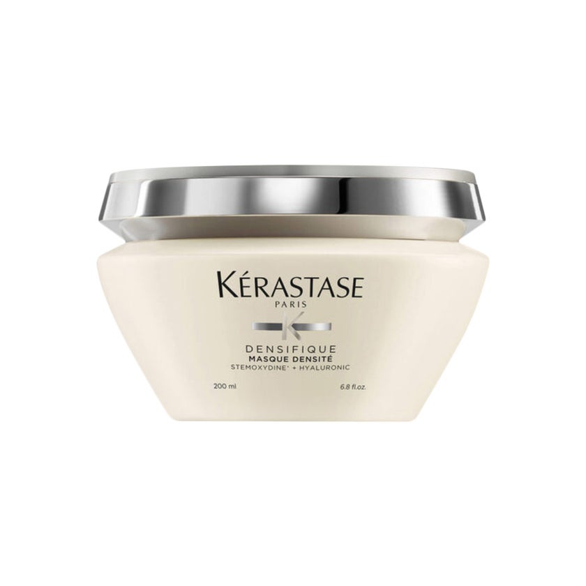 Kerastase Densifique Densite Hair Mask is an advanced densifying treatment formulated specifically for hair experiencing loss of density, thinning, or lack of body. Fine and thinning hair often appears flat, fragile, and difficult to style due to weakened fiber structure and reduced volume. This intensive mask is designed to address these concerns by delivering deep hydration, strengthening benefits, and visible thickening results without weighing the hair down. At the heart of this formula is a powerful blend of Hyaluronic Acid, Gluco-Peptide, and Ceramides, ingredients known for their ability to restore and reinforce the hair fiber. Hyaluronic Acid works to attract and retain moisture within the hair, helping to plump each strand and improve elasticity. Gluco-Peptides penetrate deep into the cuticle to strengthen the internal structure of the hair, while Ceramides smooth and protect the outer layer, enhancing shine and resilience. The mask’s lightweight yet creamy texture allows for easy distribution through the hair, instantly detangling knots and smoothing rough textures. It works to restore uniformity from root to tip, reducing breakage and improving manageability. Unlike heavy treatments that can flatten fine hair, this formula maintains natural movement while boosting body and fullness. With consistent use, hair feels noticeably thicker, softer, and more resilient, with improved bounce and shine.