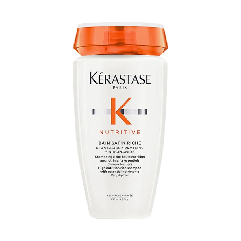 Kerastase Nutritive Bain Satin Riche Shampoo is an advanced, high-nutrition cleanser specifically formulated for very dry, brittle, and sensitized hair that requires intense hydration and restoration. Dry hair often lacks essential nutrients and moisture, leading to rough texture, dullness, and increased breakage. This luxurious shampoo is designed to address these concerns by delivering deep nourishment while gently cleansing the scalp and hair without disrupting its natural moisture balance. Infused with a powerful blend of plant-based proteins, niacinamide (a form of vitamin B3), and essential nutrients, this formula works to strengthen the hair fiber from within while replenishing lost hydration. Plant-based proteins derived from wheat, corn, and soy help restore hair structure and reinforce weakened strands, while niacinamide supports scalp health, improves moisture retention, and enhances overall hair resilience. Together, these ingredients create a protective barrier that locks in hydration and prevents further dryness. Its rich, creamy texture transforms into a soft, luxurious lather that effectively removes impurities, buildup, and excess oil without stripping the hair of its natural oils. Unlike traditional shampoos that may leave hair feeling dry or stiff, this formula deeply nourishes while maintaining softness and flexibility. It smooths the cuticle, reduces roughness, and enhances shine, leaving hair feeling silky, supple, and more manageable after every wash. With continued use, this shampoo helps restore vitality to extremely dry hair by improving elasticity, reducing breakage, and enhancing overall texture. It works to revive dull, lifeless strands, making them appear healthier, shinier, and more resilient. Suitable for daily or frequent use, it provides long-lasting hydration and comfort to both hair and scalp.