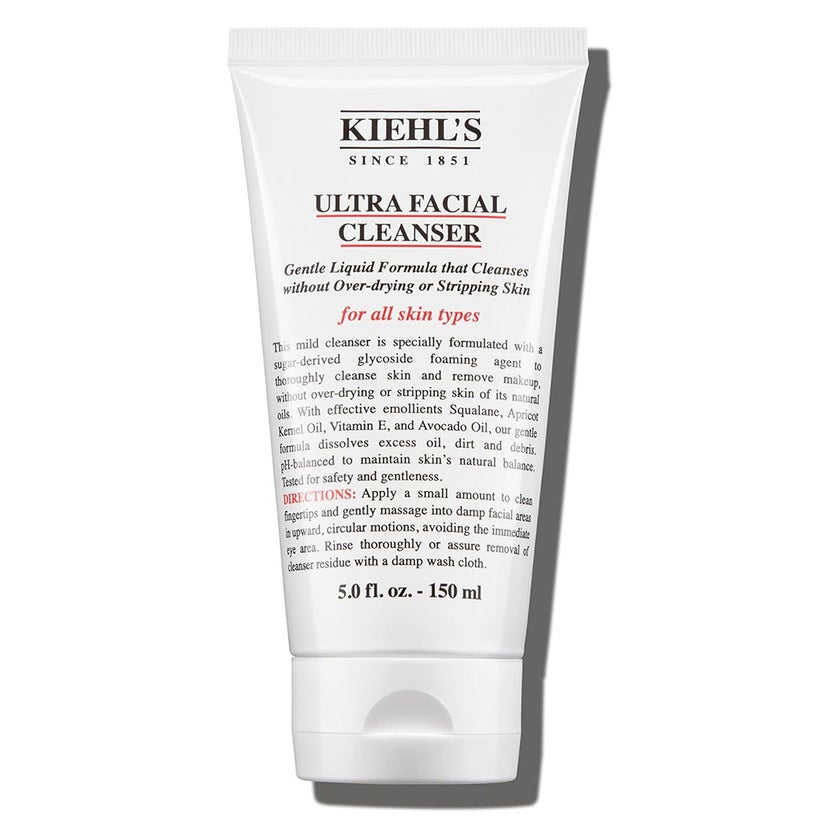 Kiehl's Ultra Facial Gentle Liquid Formula Cleanser is a gentle, hydrating face wash designed for daily use on all skin types, including sensitive skin. This carefully formulated foaming cleanser removes dirt, oil, and surface impurities without stripping the skin of its natural moisture, leaving it feeling clean, balanced, and comfortable. Its pH-balanced formula helps maintain the skin's natural barrier while preparing it to receive the benefits of other skincare treatments. Suitable for morning and evening use, the cleanser is mild enough to support consistent daily cleansing routines without causing irritation or dryness. The formula is enriched with a blend of skin-conditioning ingredients, including Squalane, Apricot Kernel Oil, Vitamin E, and Avocado Oil. Squalane, derived from olives, is a lightweight, non-greasy oil known for its ability to help strengthen and restore the skin's moisture barrier. Apricot Kernel Oil contains essential fatty acids and Vitamin E, helping to soften and nourish the skin. Avocado Oil, a rich source of amino acids and vitamins A, D, E, and potassium, provides deep emollient care, while Vitamin E supports antioxidant protection and overall skin health. These ingredients work together to maintain hydration, improve texture, and leave skin feeling supple and comfortable after each wash.