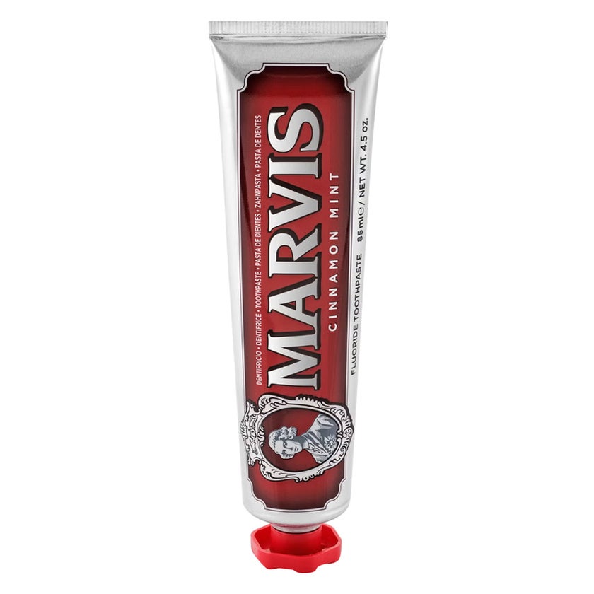 Marvis Cinnamon Mint Toothpaste is a premium Italian toothpaste designed to deliver deep cleansing, fresh breath, and effective oral protection with a bold twist. This distinctive formulation blends warm cinnamon spice with cool mint freshness, creating an invigorating flavour that elevates ordinary dental care to something truly memorable. The rich, creamy texture works thoroughly to remove plaque and surface impurities while protecting your teeth against cavities and enamel wear thanks to fluoride. Xylitol supports a balanced oral environment, helping reduce harmful bacteria and maintain healthier gums. With every brush, enjoy a refreshing burst of cinnamon mint flavour that not only freshens breath but also leaves your mouth feeling clean and revitalized. Whether you’re a fan of classic mint pastes or looking to spice up your oral care routine with a unique flavour, Marvis Cinnamon Mint Toothpaste delivers both performance and personality. Its elegant Italian-designed tube is a standout addition to any bathroom shelf and a perfect choice for daily brushing at home or on the go.