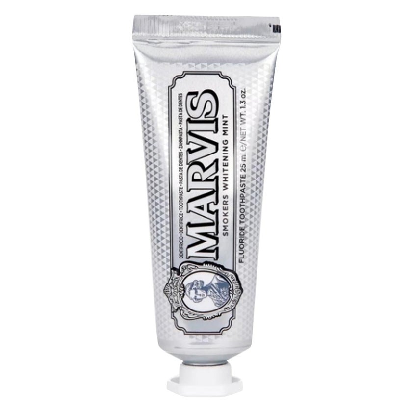 Marvis Smokers Whitening Mint Toothpaste specifically engineered for smokers and lifestyle-induced stains. This premium toothpaste from Marvis combines expert whitening care with high-quality ingredients to help lift tobacco stains and discoloration while promoting strong, healthy teeth. The gentle yet effective formula helps remove surface enamel stains caused by smoking, coffee, tea, and red wine restoring a cleaner, healthier appearance to your smile. Infused with a refreshing mint flavour, it keeps breath fresh and clean, combating common smoking-related odours without harsh abrasives that irritate enamel. Marvis Smokers Whitening Mint is enriched with fluoride and xylitol, working to protect enamel, strengthen teeth, and support everyday oral hygiene. The rich, luxurious texture makes brushing feel indulgent while delivering powerful cleaning and whitening results. Whether you’re a daily smoker or just want confidence in your smile, this toothpaste offers a refined combination of whitening, breath-freshening, and protective oral care all in a classic Italian-designed tube