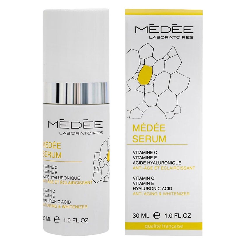 Medee Vitamin C, E and Hyaluronic Acid Face Serum is a lightweight facial serum developed to reduce visible signs of aging while promoting a brighter and more even skin tone. Formulated with Vitamin C, Vitamin E, and Hyaluronic Acid, this serum delivers targeted care designed to improve skin texture, enhance radiance, and support long-term skin health. Its smooth consistency absorbs quickly, allowing effective delivery of active ingredients without leaving a greasy residue. Vitamin C plays a key role in brightening the complexion and improving uneven skin tone. It helps reduce the appearance of dullness while supporting a clearer and more radiant look. Vitamin E complements this action by providing antioxidant support, helping defend the skin against environmental stressors that contribute to premature aging. Together, these vitamins work to improve overall skin vitality and maintain a healthier appearance. Hyaluronic Acid enhances hydration by attracting and retaining moisture within the skin. This helps improve elasticity and plump the skin, reducing the appearance of fine lines and wrinkles. Improved hydration supports smoother texture and a firmer feel, contributing to a more youthful look over time. The serum features a silky, non-greasy texture that spreads easily and absorbs rapidly, making it suitable for daily use. Its lightweight formula ensures comfort throughout the day while maintaining hydration and brightness. Packaged under hygienic conditions, the product maintains purity and quality to ensure safe and reliable use. Medee Serum Anti-Aging & Whitenizer supports a consistent skincare routine by combining brightening care, antioxidant protection, and hydration support in one formula. With regular application, the skin appears smoother, more radiant, and visibly refreshed. Designed for individuals seeking improved tone, texture, and firmness, this serum delivers balanced care in a refined, fast-absorbing format suitable for modern skincare routines.