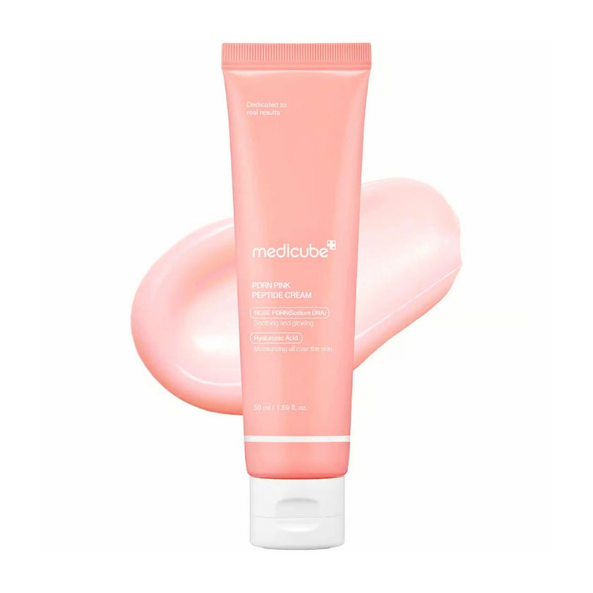 Medicube PDRN Pink Hyaluronic Moisturizing Cream is a restorative facial cream created to comfort, replenish, and protect skin that feels dry, sensitive, or easily stressed. The texture is rich yet airy, allowing it to melt seamlessly into the skin without heaviness. It delivers lasting hydration while leaving the complexion feeling soft, smooth, and balanced. Designed for daily care, this cream focuses on restoring skin comfort and resilience, making it an ideal choice for those seeking consistent moisture support with a refined, non-greasy finish. At the center of the formula is PDRN, a skin-restoring ingredient known for supporting renewal and overall skin vitality. It works alongside multiple forms of hyaluronic acid that help attract and retain moisture within the skin, creating a plump and supple appearance. This layered hydration approach ensures moisture is delivered effectively while helping reduce visible tightness and dryness. The naturally pink tone of the cream comes from botanical extracts rather than artificial colorants, reflecting a thoughtful approach to formulation. This gentle composition makes the cream especially suitable for sensitive skin types that require extra care. By strengthening the skin barrier, the cream helps protect against moisture loss and external stressors, supporting a healthier-looking surface. Skin feels cushioned, soothed, and nourished, with improved smoothness and elasticity that enhance overall appearance.