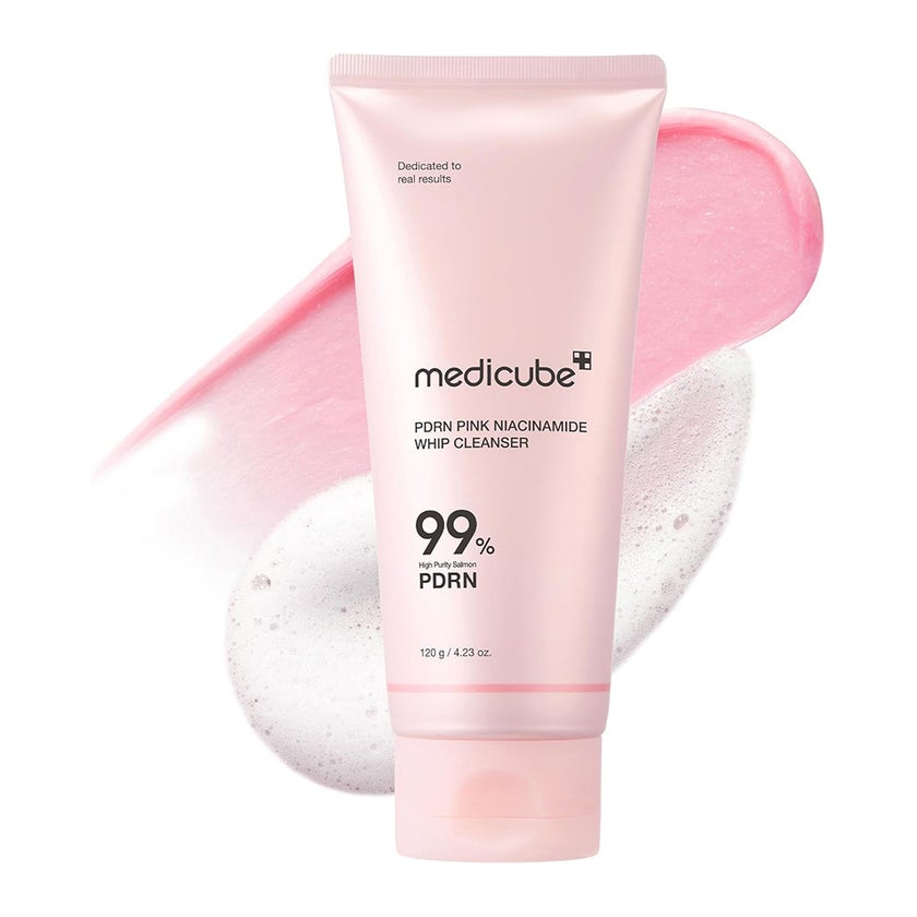 Medicube PDRN Pink Niacinamide Whip Cleanser is a gentle, whipped facial cleanser designed to provide a thorough yet soothing cleanse for all skin types. Its unique marshmallow-like texture transforms into a soft, airy foam, offering a luxurious cleansing experience that effectively lifts away impurities, excess sebum, and light makeup without stripping the skin's natural moisture. This makes it ideal for daily use, providing both comfort and efficacy for sensitive, combination, or dry skin. The formula is enriched with PDRN, a bioactive component derived from salmon DNA, known for its regenerative properties. PDRN helps support skin renewal and repair, promoting healthier, more resilient skin over time. Niacinamide, a key ingredient, contributes to brightening the complexion and evening out skin tone, helping reduce the appearance of dullness and discoloration for a more luminous look. Together, these ingredients offer a combination of cleansing, care, and skin-enhancing benefits in a single product. The cleanser produces a rich, creamy lather that glides smoothly over the skin, providing a satisfying tactile experience while gently purifying pores. It also contains moisturizing and barrier-strengthening components that help maintain hydration and reinforce the skin's protective barrier during and after cleansing. This ensures that the skin feels soft, comfortable, and balanced rather than tight or dry. Dermatologically tested for low irritation, Medicube PDRN Pink Niacinamide Whip Cleanser is suitable for sensitive skin types and can be used both morning and night. It is particularly effective for individuals looking to address concerns such as dullness, uneven skin tone, dryness, and minor impurities from daily environmental exposure. Regular use helps maintain a refreshed, radiant, and healthy-looking complexion. With its combination of gentle cleansing, regenerative support, and brightening properties, the Medicube PDRN Pink Niacinamide Whip Cleanser is a multi-functional addition to any daily skincare routine, delivering comfort, care, and visible skin improvement in one step.