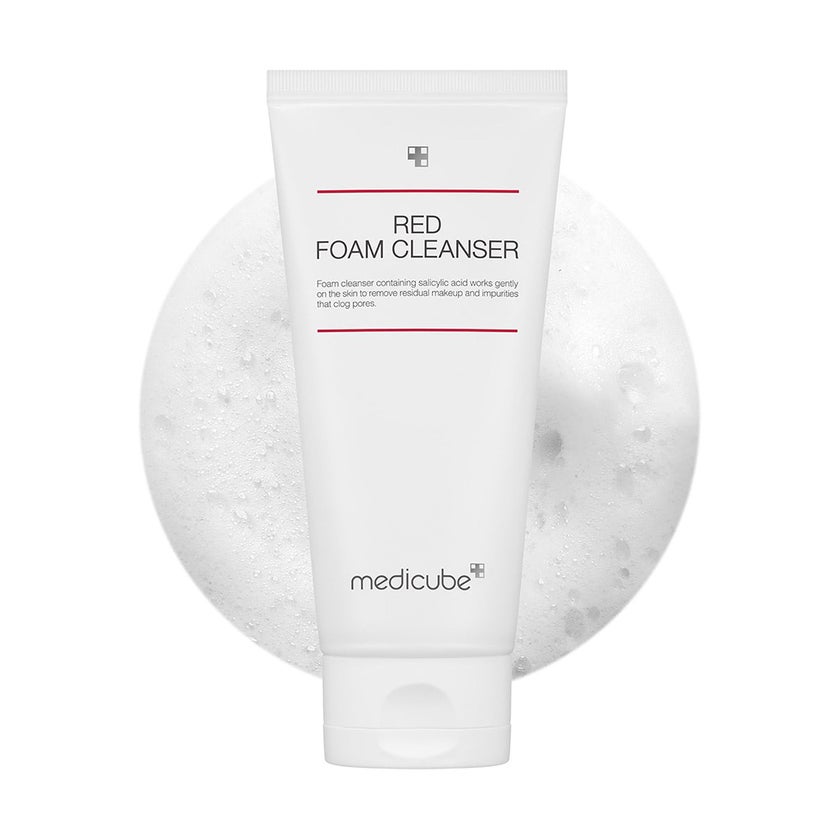 Medicube Red Foam Cleanser is a premium facial cleansing foam designed to deeply purify, refresh, and balance the skin without causing dryness or irritation. Its rich, dense foam effectively removes dirt, oil, and even stubborn makeup, making it ideal for individuals with oily, acne-prone, or combination skin. The cleanser is formulated to maintain the skin's natural moisture barrier while delivering a deep, thorough clean, leaving the complexion soft, comfortable, and refreshed after every use. Dermatologically tested, hypoallergenic, and non-irritating, it is suitable for daily use in both morning and evening skincare routines. Enriched with salicylic acid, the cleanser penetrates pores to remove excess sebum and impurities, helping to reduce blackheads, blemishes, and breakouts. Glycerin and other hydrating ingredients ensure the skin remains moisturized throughout cleansing, preventing the tight or dry feeling often caused by foaming cleansers. The combination of gentle yet effective cleansing agents and natural extracts provides a balanced approach to oily and acne-prone skin, promoting a healthier, more refined complexion over time. Its lightweight, foaming texture creates a luxurious lather that glides smoothly over the skin, ensuring easy application and even coverage. The formula not only cleanses deeply but also helps regulate sebum production and reduce surface shine, making it a practical solution for individuals looking to control oiliness and maintain skin clarity. Free from parabens, artificial colors, and animal-derived ingredients, the Red Foam Cleanser meets high standards for safe, ethical skincare, making it suitable for sensitive skin. With continued use, this cleanser helps achieve smoother, clearer, and more radiant skin. It balances cleansing and hydration, minimizes the appearance of pores, and supports a daily skincare routine that leaves the skin feeling refreshed, healthy, and visibly brighter. By incorporating Red Foam Cleanser into a consistent regimen, users can enjoy cleaner, calmer, and more resilient skin, ready to face the day with confidence.