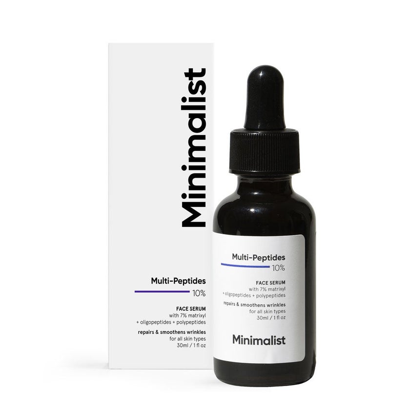 Minimalist 10% Multi-Peptides Face Serum is a scientifically developed skincare formula designed to support skin firmness and smoothness. Powered by a 10% multi-peptide concentration, it combines advanced ingredients like Matrixyl 3000, Bio-Placenta, and Argireline to target early signs of aging. The formulation works to reinforce the skin's structural proteins, promoting elasticity and suppleness over time. Matrixyl 3000, a well-studied peptide complex, helps boost collagen synthesis, improving skin tone and resilience. The inclusion of Bio-Placenta an innovative combination of peptides, amino acids, vitamins, and growth factors enhances skin repair and renewal. Together, these components work in synergy to support smoother, firmer, and more youthful-looking skin. This serum features a water-based, lightweight texture that absorbs quickly without leaving residue, making it suitable for use under moisturiser or sunscreen. It is free from fragrance, silicones, and parabens, minimising the risk of irritation and ensuring compatibility with various skin types, including sensitive skin. The pH-balanced formulation maintains the skin's natural barrier, helping prevent dryness or discomfort after application. Minimalist's commitment to transparency is reflected in its ingredient disclosure and dermatological testing. The serum's minimalist design focuses on efficacy and safety, offering a clean approach to skincare without unnecessary additives. It is non-comedogenic, ensuring pores remain unclogged and skin feels fresh after every use.