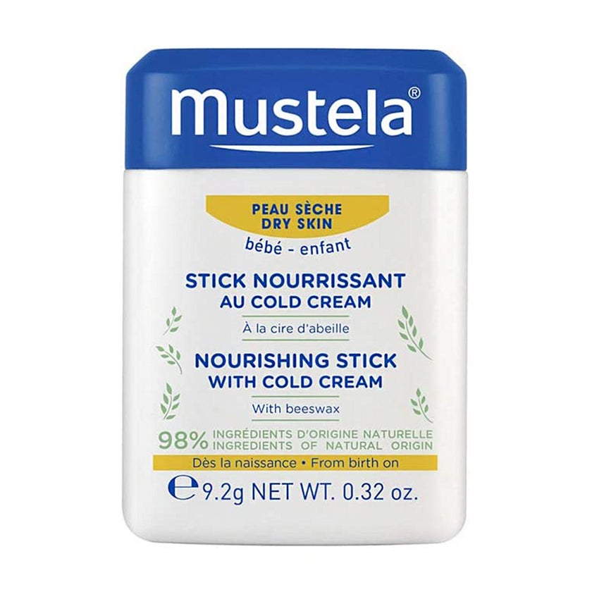 Mustela Nourishing Stick With Cold Cream is a nourishing stick for baby and child with Cold cream for dry areas exposed to external factors,such as the lips and cheeks, from birth on. It is a travel-friendly moisturizer that provides heavy-duty skin protection to relieve your baby's dry cheeks and lips. Rich moisturizer glides on gently and forms a protective barrier against environmental conditions such as cold air and wind. Composed of 96% plant-based ingredients and formulated with natural Cold Cream, lipid-replenishing ceramides, and softening and soothing Shea Butter.