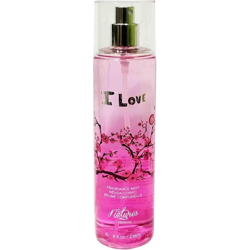 Nature's Carnival I Love Fragrance Mist is a beautifully scented mist that envelops you in a sweet and enchanting fragrance, perfect for any occasion. This lightweight formula not only hydrates and refreshes your skin but also provides a lasting, romantic scent that lingers throughout the day. Free from parabens, sulfates, and artificial dyes, this mist is gentle enough for everyday use. Whether you need a quick refresh or want to enhance your fragrance, Nature's Carnival I Love Fragrance Mist adds a soft, sweet aroma to your day while leaving your skin feeling soft and rejuvenated.