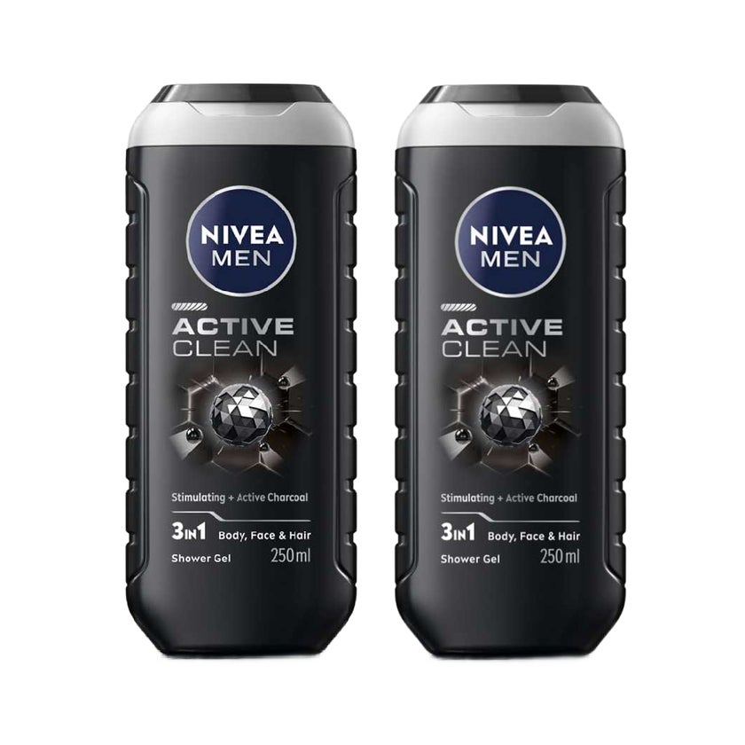 Nivea Men Active Clean 3 in 1 Shower Gel 250ml, Pack of 2