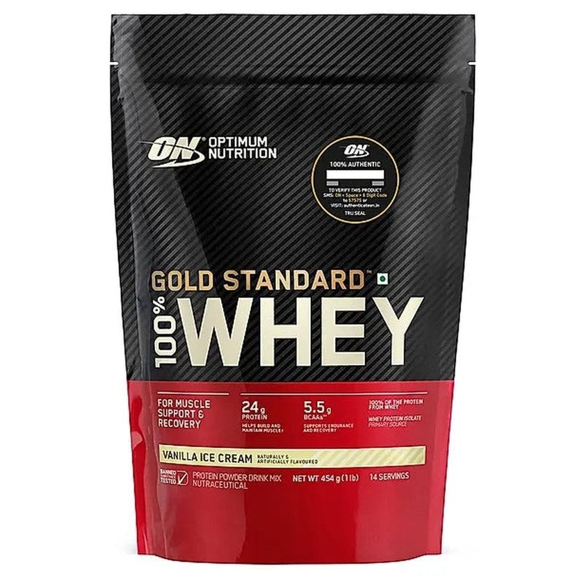 Optimum Nutrition (ON) Gold Standard 100% Whey Protein Powder Vanilla Ice Cream Protein Powder world's best-selling whey protein powder provides 24 grams of high-quality whey protein primarily from Whey Protein Isolate, which has had excess carbohydrates, fat, and lactose ‘isolated' out using sophisticated filtering technologies. The powder is also instantized for easy mixing using just a glass and spoon. With more than 20 different flavors – including naturally flavored options – there's no doubt this is the Optimum Nutrition Gold Standard 100% Whey Protein. Whey Protein Isolates (WPIs) are the purest form of whey protein that currently exists. By using WPI as the primary ingredient along with premium ultra-filtered whey protein concentrate (WPC), they are able to pack 24g blended protein consisting of whey protein isolate, whey protein concentrate, and whey peptides/hydrolysates to support lean muscle mass, muscle-building needs after training. This superior quality powder has been proved to mix easily using a shaker cup or just a glass and spoon. By adding fresh or frozen fruits, peanut butter, flaxseed oil, coconut, and other high-energy ingredients, you can transform your shake into a delicious high-protein meal or even more powerful recovery product by adding supplements like creatine, BCAA, and concentrated carbohydrate powders.