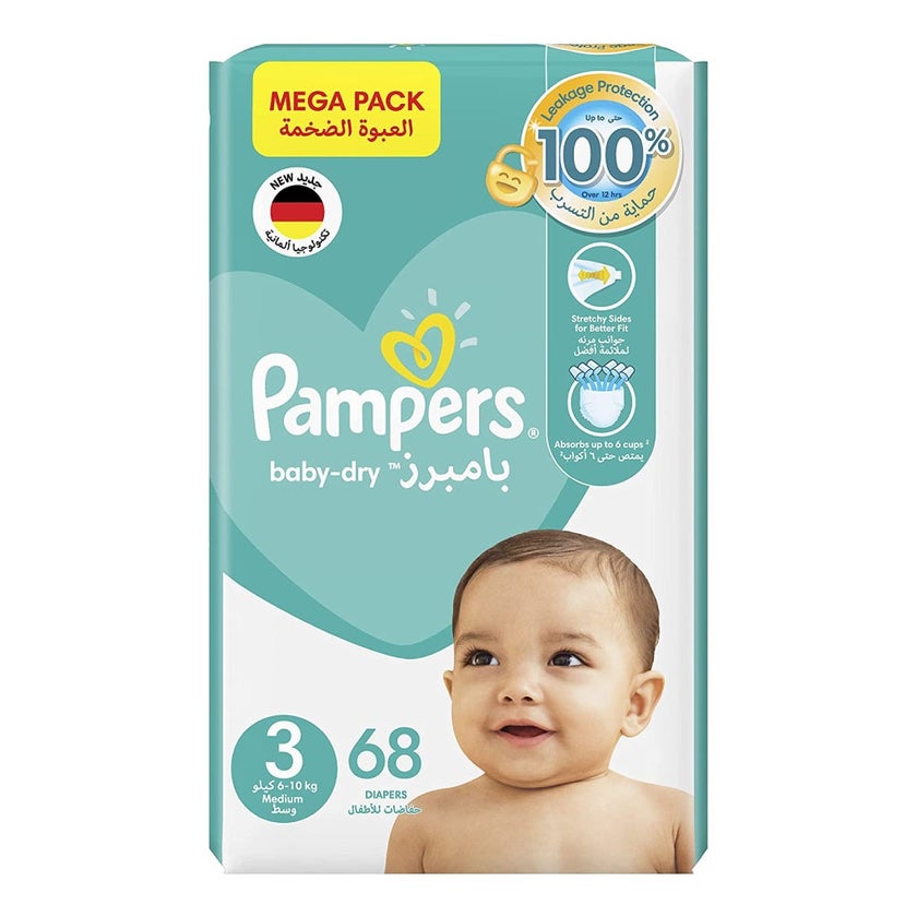 Pampers Baby Taped Diapers, Size 3, 6-10kg, Mega Pack of 68's