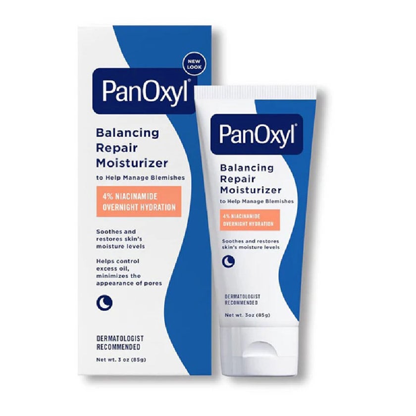 The PanOxyl PM Balancing Repair Moisturizer with 4% Niacinamide is a dermatologist-recommended nighttime skincare solution designed to deeply hydrate, restore balance, and strengthen oily, acne-prone, and sensitive skin. Created with a scientifically balanced blend of active and restorative ingredients, this moisturizer specifically caters to the needs of skin undergoing acne treatments, which often experience dryness, irritation, and compromised barrier function. At the heart of its formulation lies 4% Niacinamide, a clinically proven multitasking ingredient that helps regulate excess oil production, minimize the appearance of pores, and even out overall skin tone. It also supports the fading of post-acne marks, contributing to a smoother, more radiant complexion over time. Niacinamide’s calming and anti-inflammatory properties make it especially beneficial for sensitive or redness-prone skin. Complementing Niacinamide are Ceramides and Hyaluronic Acid, essential components that work synergistically to reinforce and replenish the skin’s natural barrier. Ceramides help lock in vital moisture, while Hyaluronic Acid draws hydration deep into the skin layers, keeping it supple, plump, and resilient despite the drying effects of acne treatments. By incorporating the PanOxyl PM Balancing Repair Moisturizer into your nightly skincare routine, you help restore hydration, reinforce your skin barrier, and support recovery from acne treatments.