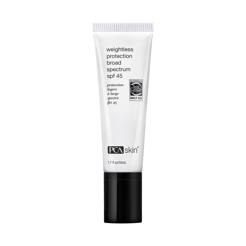 PCA Skin Weightless Protection SPF 45 Sunscreen is a lightweight, multitasking sunscreen designed to provide complete sun defense without the heavy or greasy residue that typically comes with high-SPF protection. This advanced formula combines both physical and chemical sun-blocking agents, making it highly effective against UVA and UVB rays. Enriched with zinc oxide and octinoxate, it helps prevent premature ageing and sunburn while maintaining a smooth, breathable finish that blends seamlessly into all skin types. Perfect for those with oily or combination skin, it delivers a sheer, non-comedogenic layer of protection that allows the skin to breathe and remain fresh throughout the day.