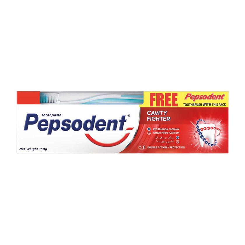 Pepsodent Cavity Fighter Toothpaste with Toothbrush is formulated to deliver superior protection against cavities while promoting overall oral health. Its advanced fluoride-based formula works deeply to strengthen enamel, preventing decay and minimizing tooth sensitivity. The toothpaste is designed to reach even difficult areas of the mouth, ensuring thorough cleaning and protection during every brushing session. The inclusion of a soft-bristle toothbrush allows for gentle but effective plaque removal, promoting healthy gums and reducing the risk of gum-related issues. Beyond cavity prevention, Pepsodent Cavity Fighter Toothpaste enhances oral hygiene by tackling bacteria and debris that accumulate daily. The toothpaste's gentle yet effective cleaning agents help remove surface stains, leaving teeth looking brighter and polished without harsh abrasion. Its fluoride-rich formulation strengthens tooth enamel, making teeth more resilient against daily wear and tear. Using the accompanying toothbrush ensures that brushing reaches every corner of the mouth, removing plaque build-up in hard-to-reach spaces and supporting long-term gum health. Daily use of the product not only prevents cavities but also maintains a fresh, clean feeling throughout the day. The balanced formulation works to protect teeth without causing discomfort, providing a gentle but thorough clean. Its consistent use helps in reducing enamel erosion and tooth decay, supporting a stronger, healthier smile over time. Regular oral care with this product ensures that teeth are left smooth, refreshed, and cavity-resistant.