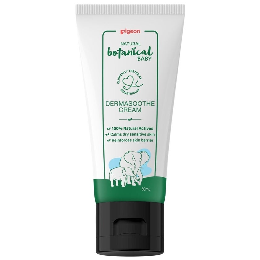 Pigeon Natural Botanical Baby Dermasoothe Cream is a gentle, steroid‑free DermaSoothe Cream is specially formulated with 100% natural active ingredients to soothe dry, sensitive, and eczema‑prone baby skin. Clinically tested under pediatrician supervision, it provides relief within as little as three hours, significantly improving skin condition in infants with mild to moderate eczema. The soft, non‑sticky texture absorbs easily, helping restore the skin's natural moisture barrier and promote balanced hydration. The formula is dermatologically tested and free from corticosteroids, parabens, fragrance, and ethyl alcohol, making it ideal for daily use on delicate baby skin. Use as often as needed to calm redness, relieve itching, and maintain comfort.