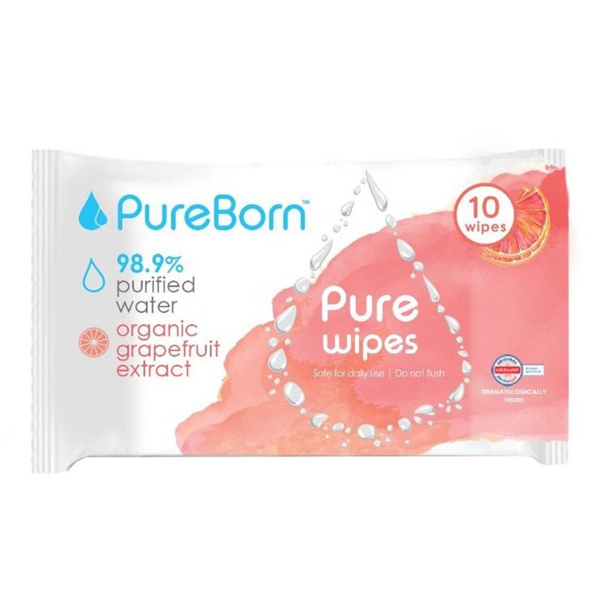 Pure Born® Pure Wipes Grapefruit are ideal for cleaning your baby's sensitive skin. They are carefully formulated to protect the environment and children's skin. These wet wipes provide a refreshing scent as it made with organic grapefruit extract. Grapefruit extract is rich in antioxidants and vitamins, stimulating cell growth and regeneration. It also contains lycopene which is known to reduce redness and inflammation of the skin. It contains carefully chosen safe ingredients to create a gentle, hypoallergenic formulation which is safe for baby. These are designed to balance skin's natural pH and are free from any ingredient of animal origin and never encourage testing on animals.