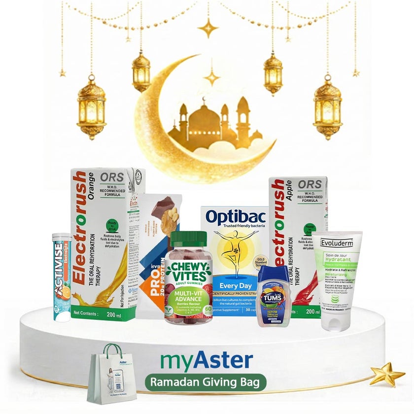 Bring comfort and care to the holy month with our thoughtfully curated Ramadan Giving Bag - a complete wellness essentials kit designed to support hydration, nutrition, digestion, and everyday self-care while fasting. Carefully assembled to address common Ramadan needs such as dehydration, fatigue, digestive discomfort, and skin dryness, this meaningful bundle helps individuals feel nourished, refreshed, and supported from Suhoor to Iftar. Whether shared with loved ones or offered through charitable giving, this all-in-one kit delivers health, comfort, and hope, a simple yet powerful way to spread kindness and celebrate the spirit of compassion and togetherness.
