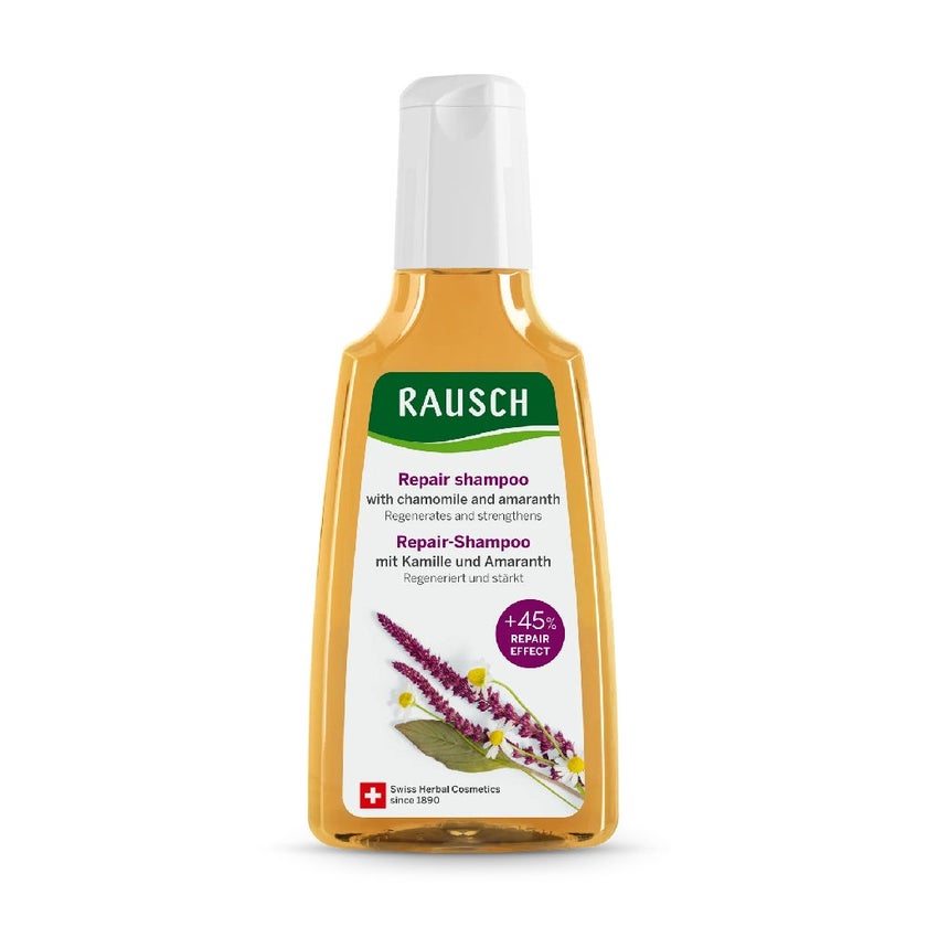 Rausch Chamomile Restructuring Shampoo has been formulated for damaged and stressed hair. Its valuable extracts of chamomile and quillaja bark cares for damaged hair, soothes the scalp and regenerates the hair structure, giving volume and natural shine.