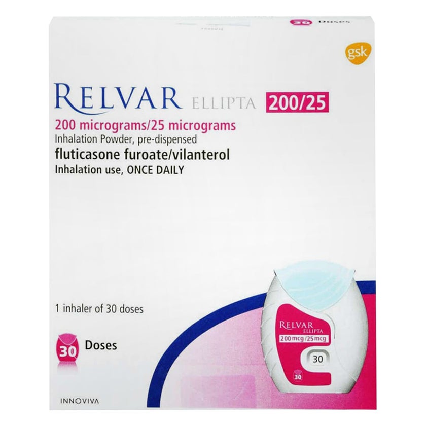 Relvar Ellipta 200mcg/25mch Inhaler 30 Doses